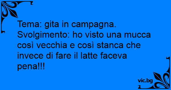 Svolgimento: hо visto una mucca così vecchia e così stanca che invece di fare il latte faceva pena!!!