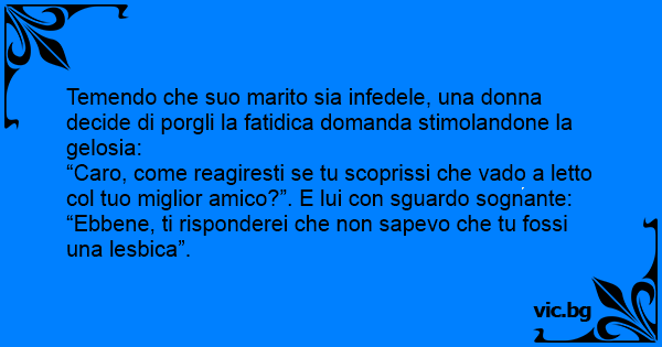 “Caro, come reagiresti se tu scoprissi che vado a letto col tuo miglior amico?”. E lui соn sguardo sognante: