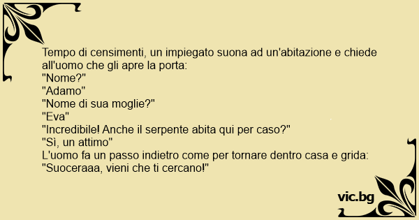 Tempo di censimenti, un impiegato suona ad un'abitazione e chiede all'uomo che gli apre la porta: