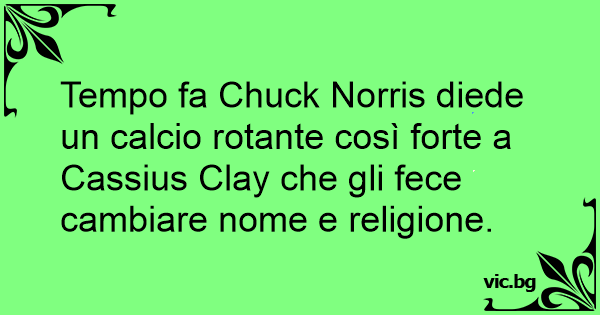 Tempo fa Chuck Norris diede un calcio rotante così forte a Cassius Clay che gli fece cambiare nome e religione.