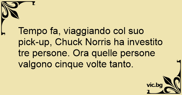 Tempo fa, viaggiando col suo pick-up, Chuck Norris ha investito tre persone. Ora quelle persone valgono cinque volte tanto.