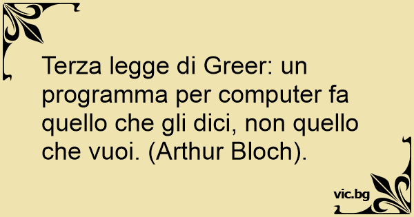 Terza legge di Greer: un programma per computer fa quello che gli dici, non quello che vuoi. (Arthur Bloch).