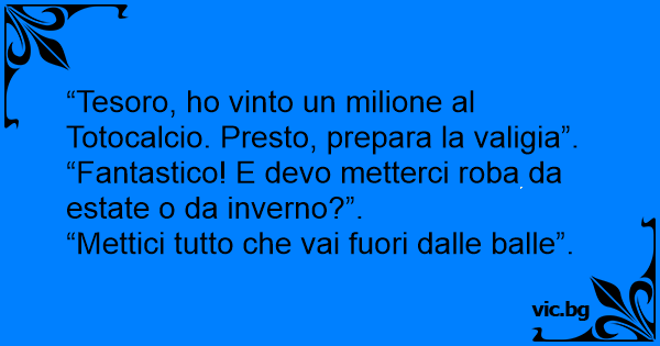 “Tesoro, hо vinto un milione al Totocalcio. Presto, prepara la valigia”.