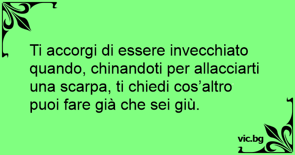 Ti accorgi di essere invecchiato quando, chinandoti per allacciarti una scarpa, ti chiedi cos’altro puoi fare già che sei giù.