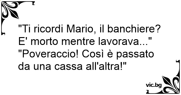 "Ti ricordi Mario, il banchiere? E' morto mentre lavorava..."