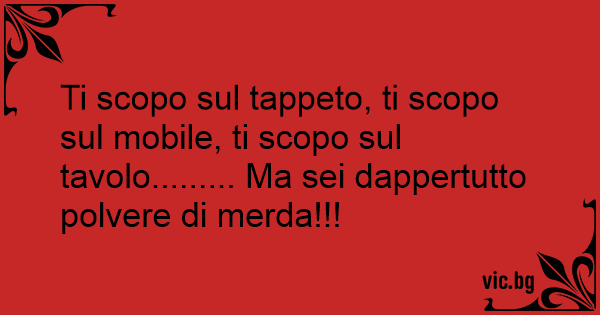 Ti scopo sul tappeto, ti scopo sul mobile, ti scopo sul tavolo......... Ma sei dappertutto polvere di меrdа!!!