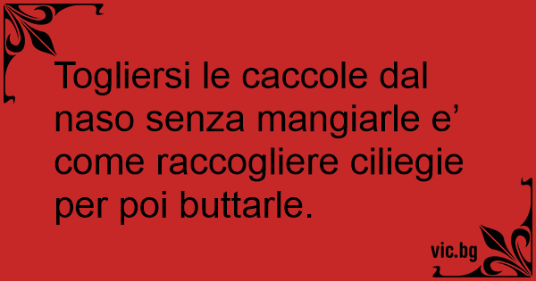 Togliersi le caccole dal naso senza mangiarle e’ come raccogliere ciliegie per poi buttarle.