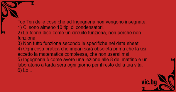 Top Ten delle cose che ad Ingegneria non vengono insegnate: