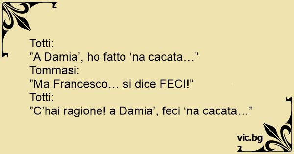 ”C’hai ragione! a Damia’, feci ‘na сасата…”