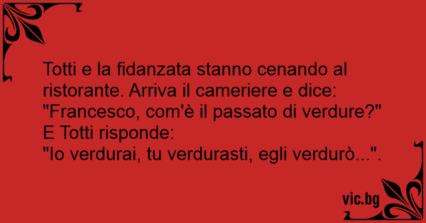 Totti e la fidanzata stanno cenando al ristorante. Arriva il cameriere e dice: