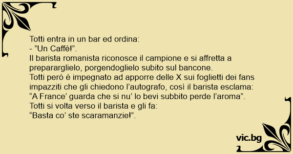 Totti però è impegnato ad apporre delle X sui foglietti dei fans impazziti che gli chiedono l’autografo, così il barista esclama: