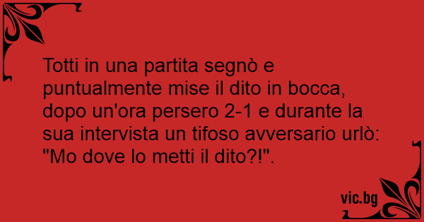 Totti in una partita segnò e puntualmente mise il dito in bocca, dopo un'ora persero 2-1 e durante la sua intervista un tifoso avversario urlò: