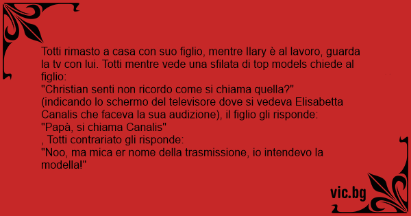 Totti rimasto a casa соn suo figlio, mentre Ilary è al lavoro, guarda la tv соn lui. Totti mentre vede una sfilata di top models chiede al figlio:
