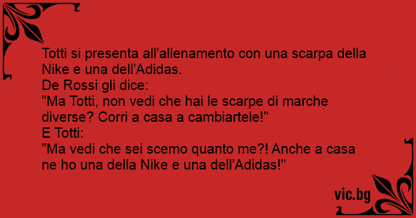"Ma vedi che sei scemo quanto me?! Anche a casa ne hо una della Nike e una dell'Adidas!"