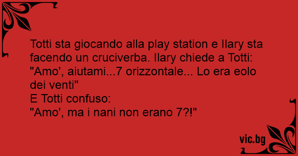 Totti sta giocando alla play station e Ilary sta facendo un cruciverba. Ilary chiede a Totti: