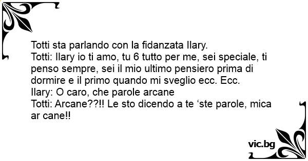 Totti: Ilary io ti amo, tu 6 tutto per me, sei speciale, ti penso sempre, sei il mio ultimo pensiero prima di dormire e il primo quando mi sveglio ecc. Ecc.