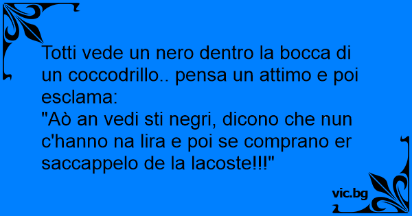 Totti vede un nero dentro la bocca di un coccodrillo.. pensa un attimo e poi esclama:
