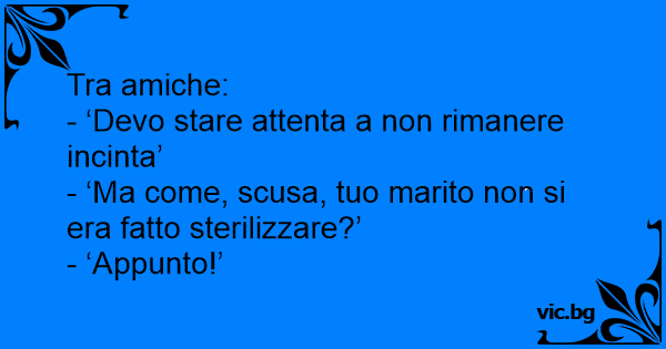 "Devo fare molta attenzione a non rimanere incinta!" "Ma se tuo marito e' sterile!" "Appunto!"