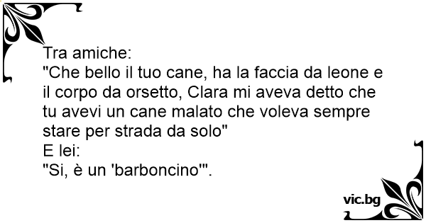 "Che bello il tuo cane, ha la faccia da leone e il corpo da orsetto, Clara mi aveva detto che tu avevi un cane malato che voleva sempre stare per strada da solo"