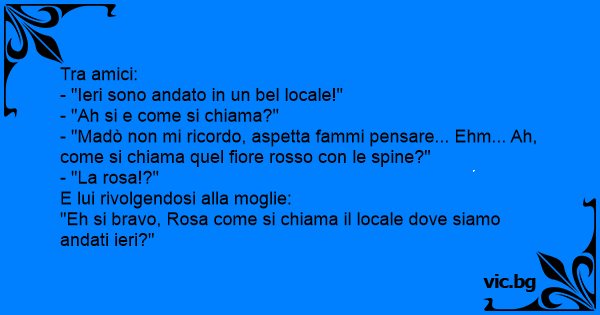 "Eh si bravo, Rosa come si chiama il locale dove siamo andati ieri?"