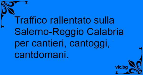 Traffico rallentato sulla Salerno-Reggio Calabria per cantieri, cantoggi, cantdomani.