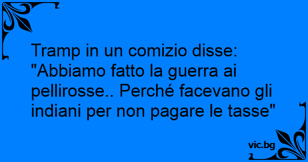 "Abbiamo fatto la guerra ai pellirosse.. Perché facevano gli indiani per non pagare le tasse"