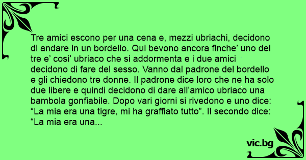 “Ma che саzzате dice questo… era cosi’ ubriaco che gli abbiamo dato una bambola gonfiabile”. Allora chiedono spiegazioni e il terzo dice: