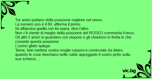 Non c'è niente di meglio della posizione del RODEO commenta il terzo.