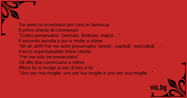 “Ah ah ah!!! Per me sette preservativi: lunedi’, martedi’, mercoledi’ …” .