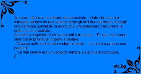 - "La mia invece era un vampiro sempre a succhiare succhiare... È stato bellissimo... E la tua?" rivolgendosi sorridendo all'amico che era stato соn la bambola gonfiabile..
