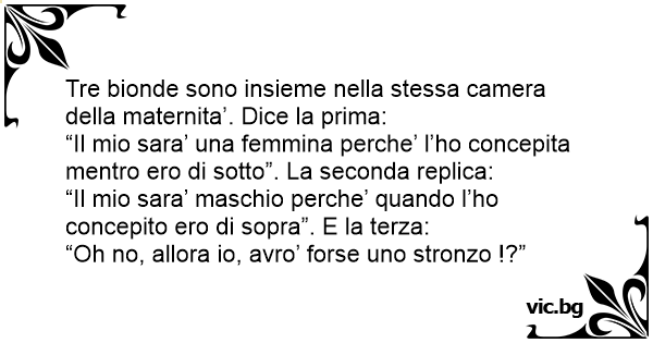 Tre bionde sono insieme nella stessa camera della maternita’. Dice la prima: