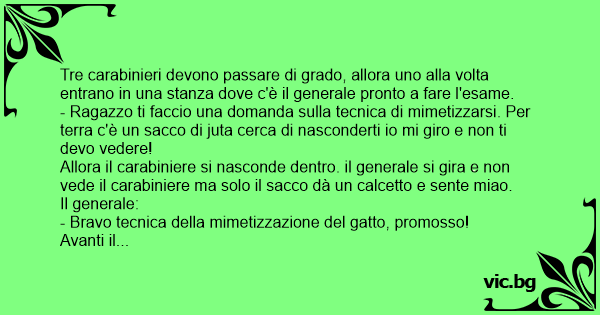 Tre carabinieri devono passare di grado, allora uno alla volta entrano in una stanza dove c'è il generale pronto a fare l'esame.