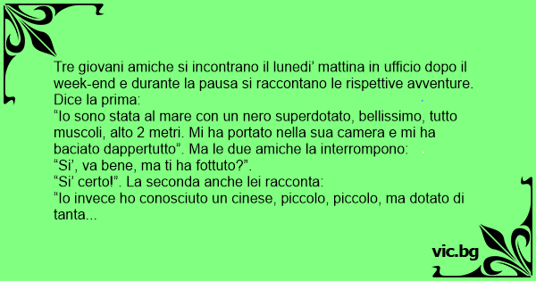 “Si’, certo!”. Allora la terza inizia a raccontare la sua avventura del week-end: