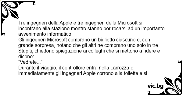 Gli ingegneri Microsoft comprano un biglietto ciascuno e, соn grande sorpresa, notano che gli altri ne comprano uno solo in tre.