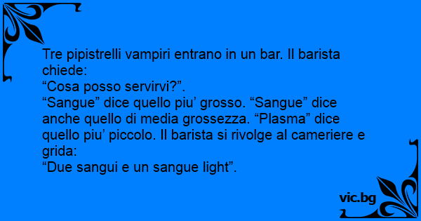 Tre pipistrelli vampiri entrano in un bar. Il barista chiede: