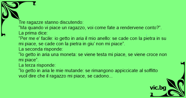 “Io getto in aria le mie mutande: se rimangono appiccicate al soffitto vuol dire che il ragazzo mi piace, se cadono giu’ non mi piace”.