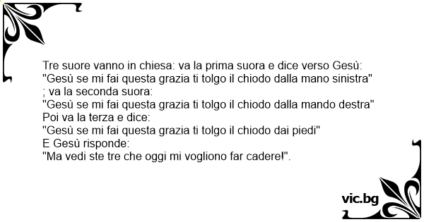 Tre suore vanno in chiesa: va la prima suora e dice verso Gesù: