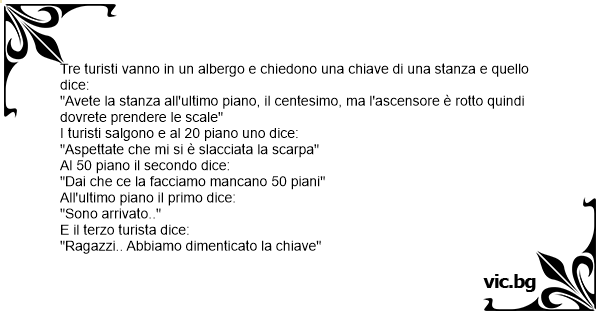 Tre turisti vanno in un albergo e chiedono una chiave di una stanza e quello dice: