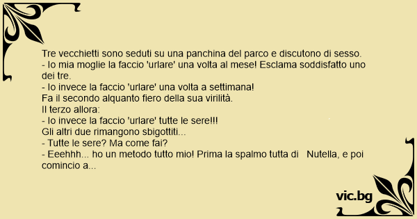 - Io mia moglie la faccio 'urlare' una volta al mese! Esclama soddisfatto uno dei tre.