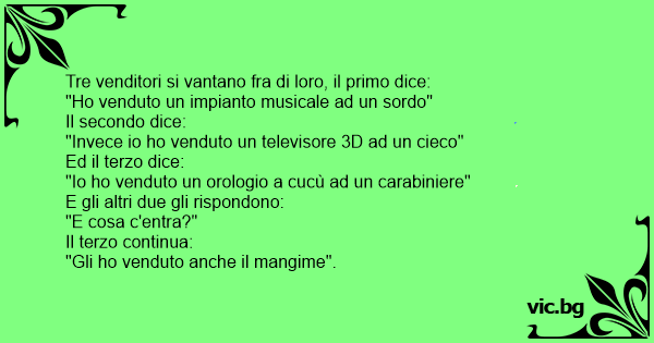 Tre venditori si vantano fra di loro, il primo dice:
