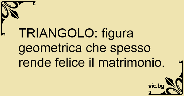 TRIANGOLO: figura geometrica che spesso rende felice il matrimonio.