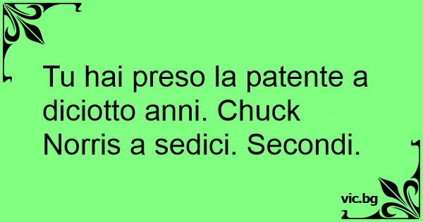 Tu hai preso la patente a diciotto anni. Chuck Norris a sedici. Secondi.