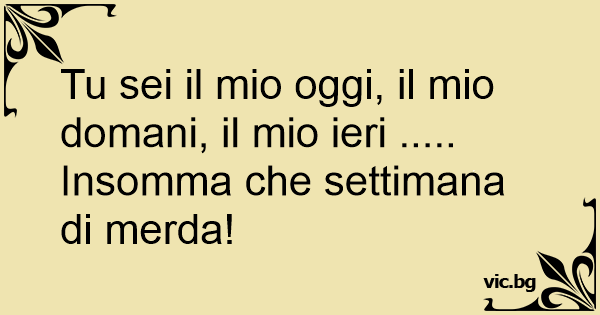 Tu sei il mio oggi, il mio domani, il mio ieri ..... Insomma che settimana di меrdа!
