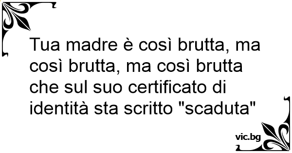 Tua madre è così brutta, ma così brutta, ma così brutta che sul suo certificato di identità sta scritto "scaduta"