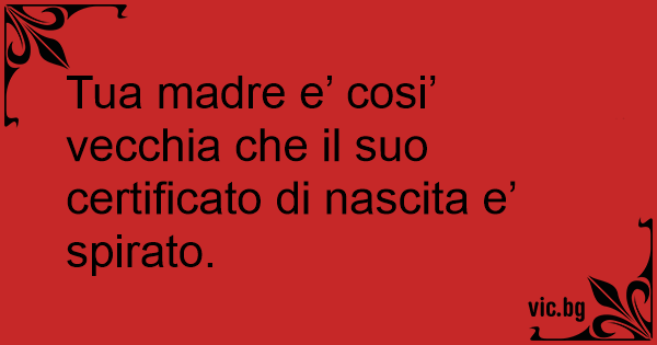 Tua madre e’ cosi’ vecchia che il suo certificato di nascita e’ spirato.