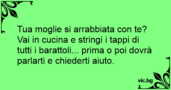 Vai in cucina e stringi i tappi di tutti i barattoli... prima o poi dovrå parlarti e chiederti aiuto.