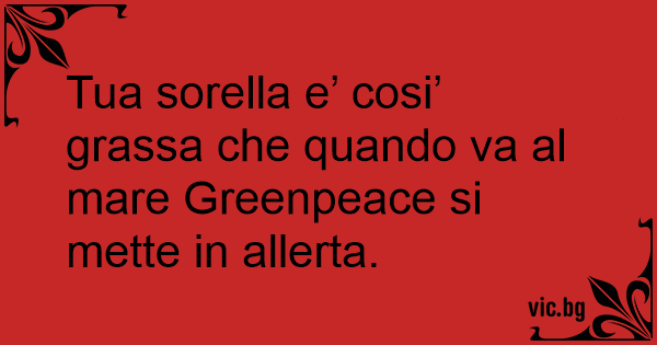Tua sorella e’ cosi’ grassa che quando va al mare Greenpeace si mette in allerta.