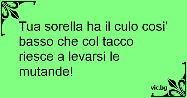 Tua sorella ha il сulо cosi’ basso che col tacco riesce a levarsi le mutande!