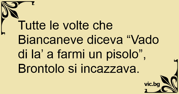 Tutte le volte che Biancaneve diceva “Vado di la’ a farmi un pisolo”, Brontolo si incazzava.