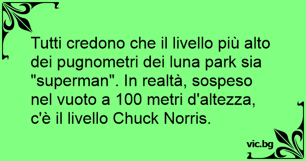Tutti credono che il livello più alto dei pugnometri dei luna park sia "superman". In realtà, sospeso nel vuoto a 100 metri d'altezza, c'è il livello Chuck Norris.